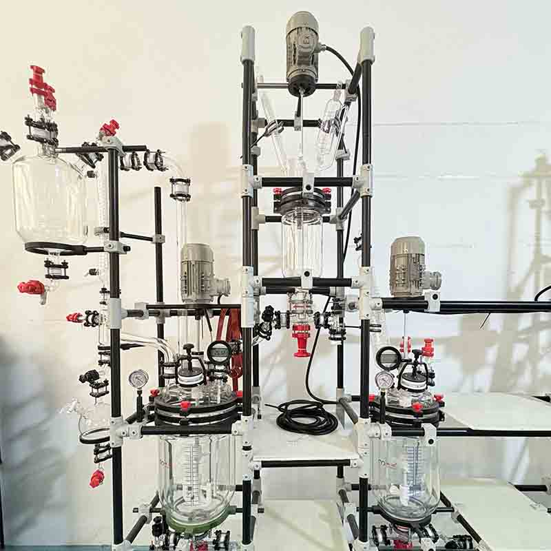 ระบบเครื่องปฏิกรณ์แก้วแบบรวมช่วยให้สามารถดำเนินกระบวนการปฏิกิริยาได้หลากหลายในหน่วยเดียว มีระบบทำความร้อน/ทำความเย็นแบบแจ็คเก็ต การกวนเชิงกล และความสามารถในการดูดสูญญากาศ รองรับการสังเคราะห์ทางเคมี การตกผลึก และการกลั่นสำหรับการวิจัยหรือการผลิตนำร่อง